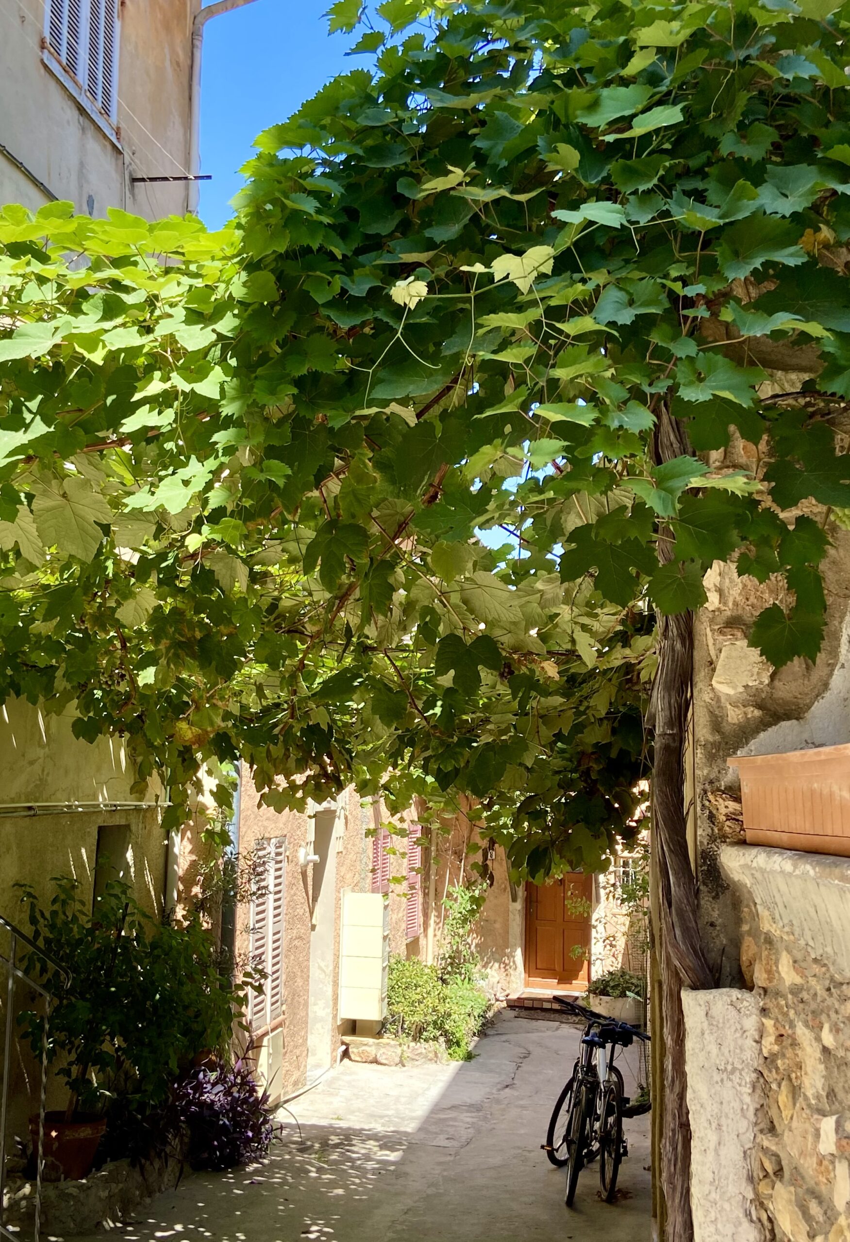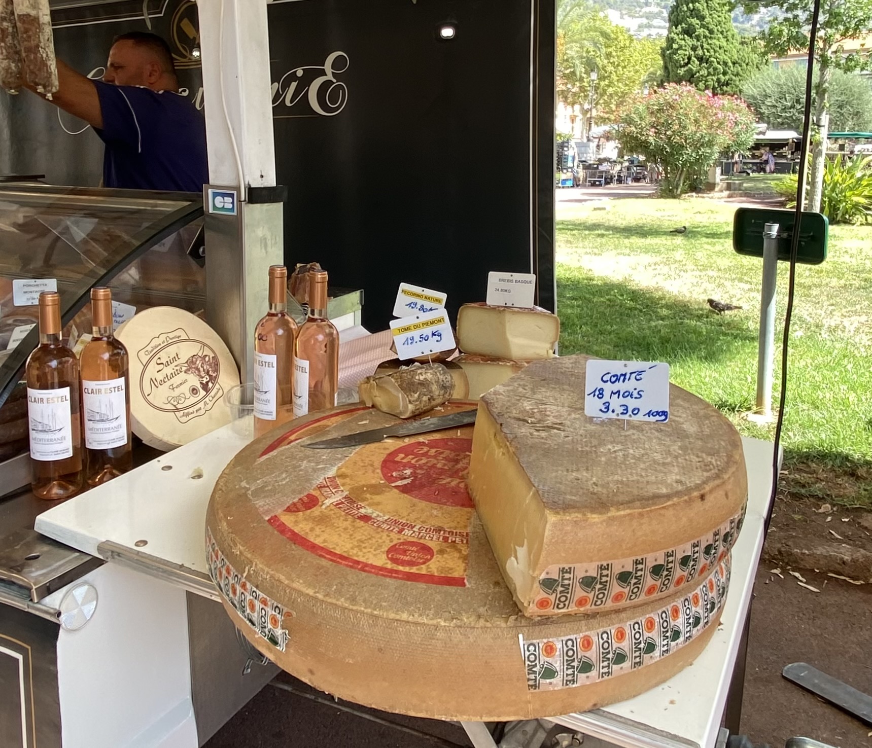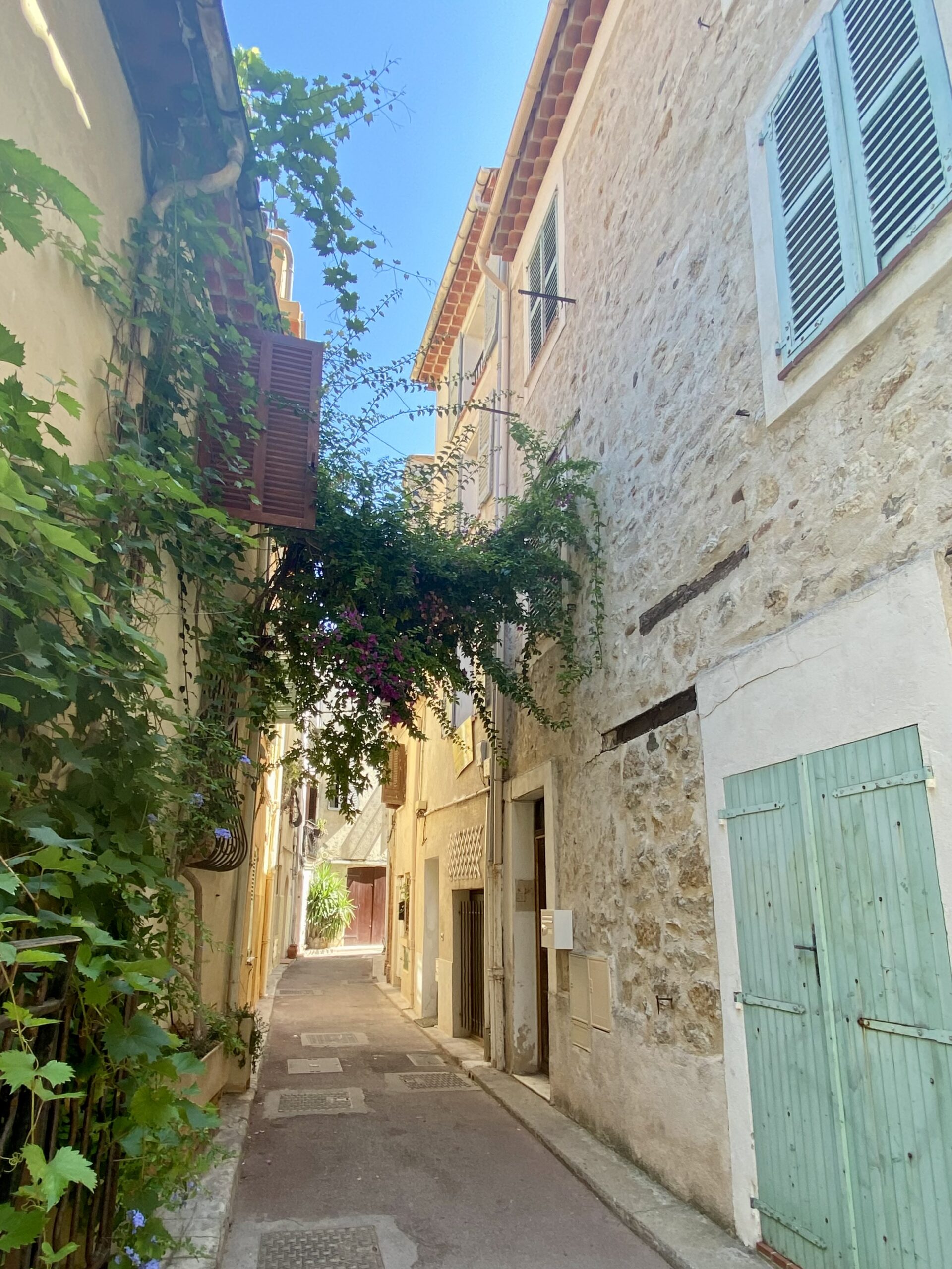 Just seven kilometers east of Nice, the quaint town of Villefranche-sur-Mer offers a fresh market Wednesdays and Saturdays, and colorful architecture throughout this hilly port town. So much fresh produce, cheese, pasta, olives, linens are sold here. We left with a very large slice of Comté cheese that lasted throughout our whole holiday! Vendors here provided samples and were extra friendly! While strolling through Villefranche, you’ll discover Rue Obscure, a medieval underground street, and plenty of fun shops and cafes.