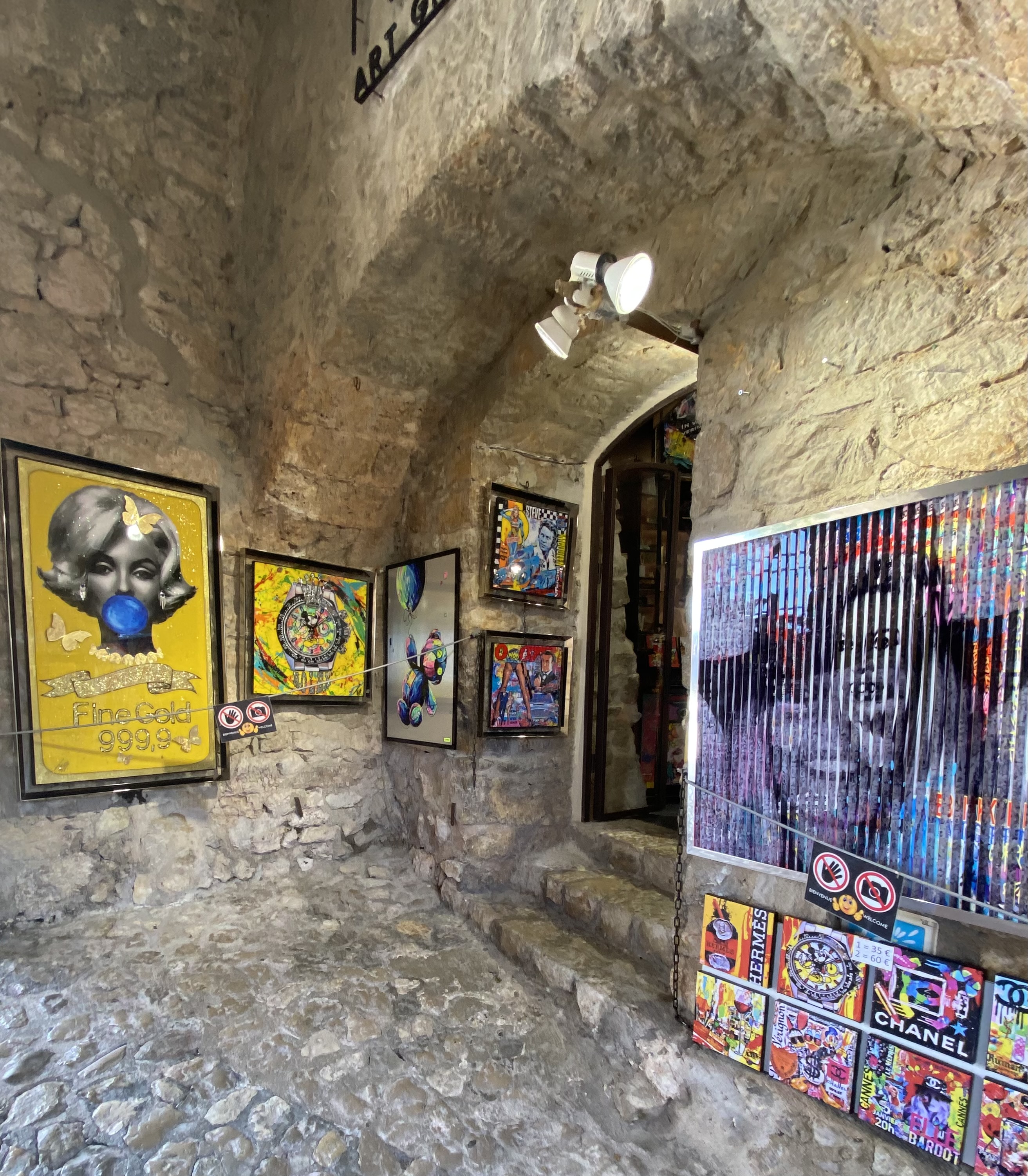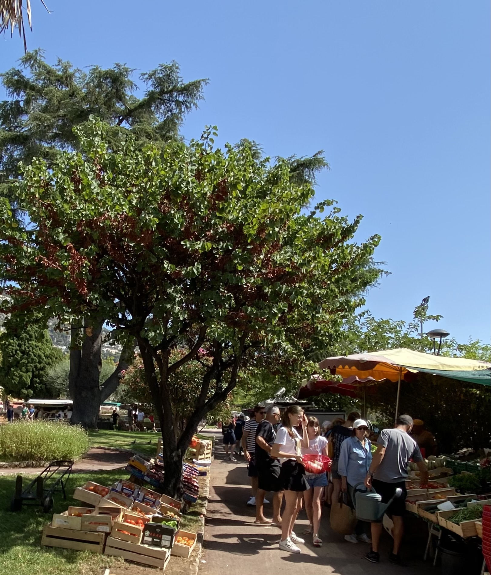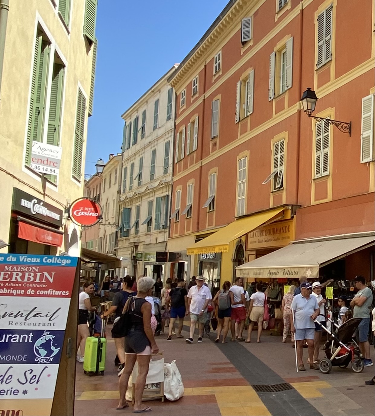 Just seven kilometers east of Nice, the quaint town of Villefranche-sur-Mer offers a fresh market Wednesdays and Saturdays, and colorful architecture throughout this hilly port town. So much fresh produce, cheese, pasta, olives, linens are sold here. We left with a very large slice of Comté cheese that lasted throughout our whole holiday! Vendors here provided samples and were extra friendly! While strolling through Villefranche, you’ll discover Rue Obscure, a medieval underground street, and plenty of fun shops and cafes.