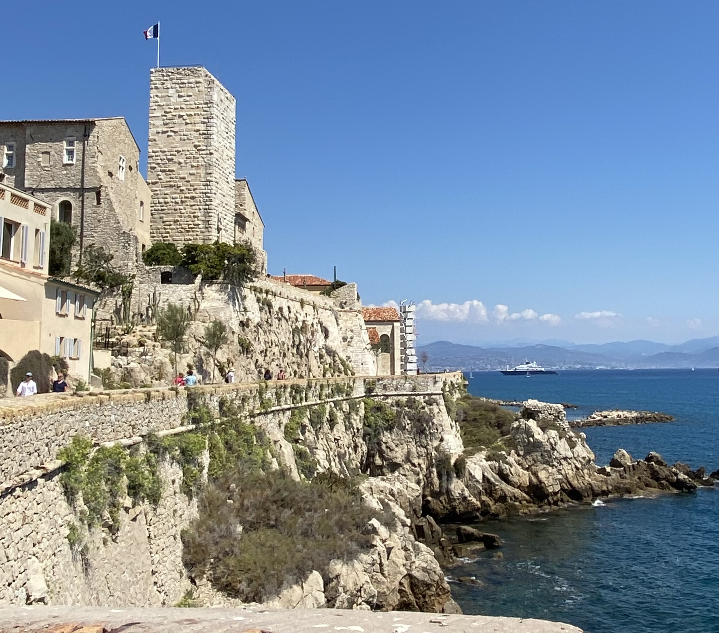 I was excited to visit Antibes after reading about the fabulous market there, Marché Provençal. This market offers all the farmers market finds. Fruit, veggies, cheese and meats, along with clothing, fragrances, crafts, baskets and more are packed in at this market. There is a lot of history here, dating back to around 1300 BC (The Iron Age). I love reading about the history of this area. Picasso spent time in his Antibes studio. You can see some of his art at the Musée Picasso which is located in the former Grimaldi Castle built in the 1300’s. This castle was built on what was once the Ancient Greek Acropolis (high city) of Antipolis. Old Town Antibes is a colorful, charming place to visit. Its walkable and about 22 kilometers south west of Nice.