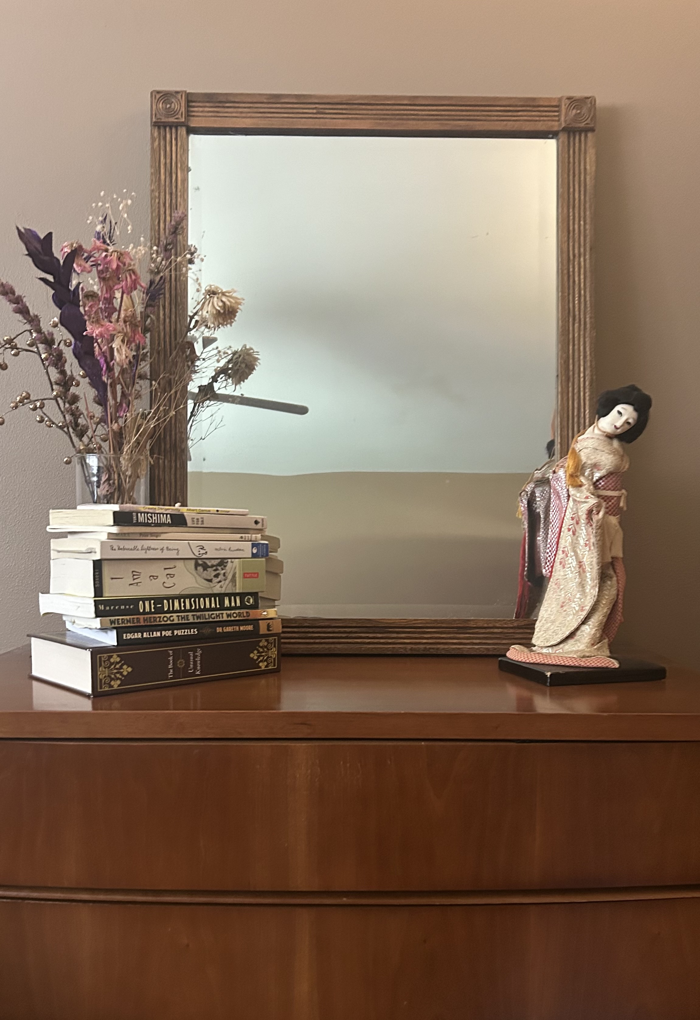 I mentioned that there’s nothing I need, but found this mirror at a local antique store for a cheap! And had the perfect spot for it!