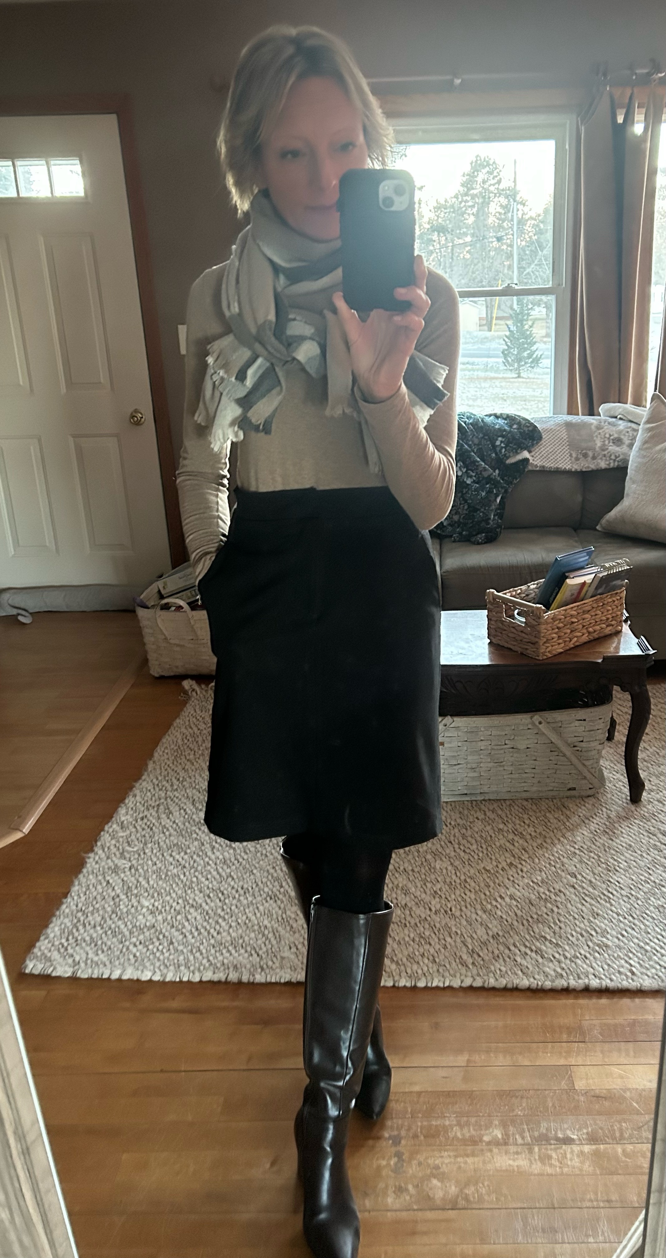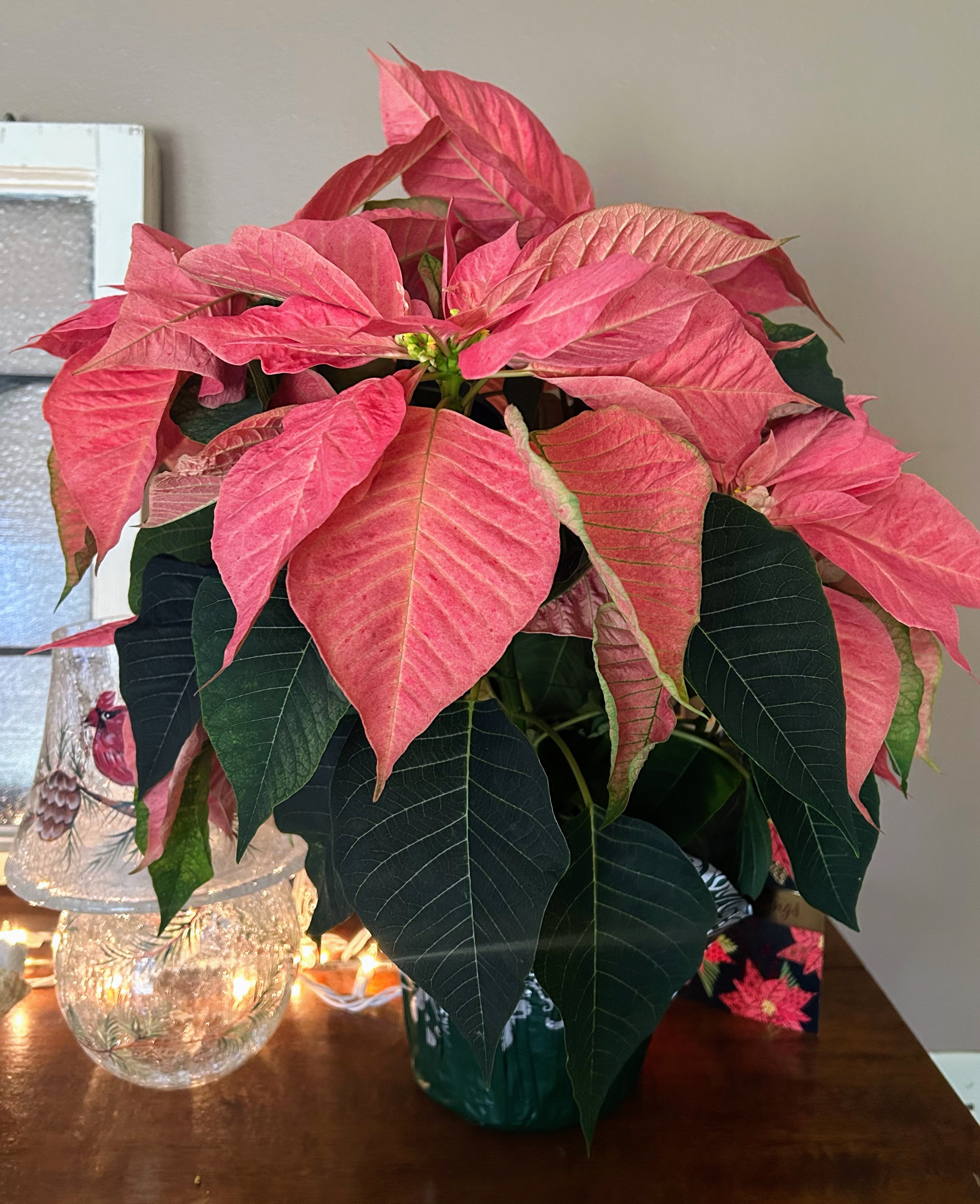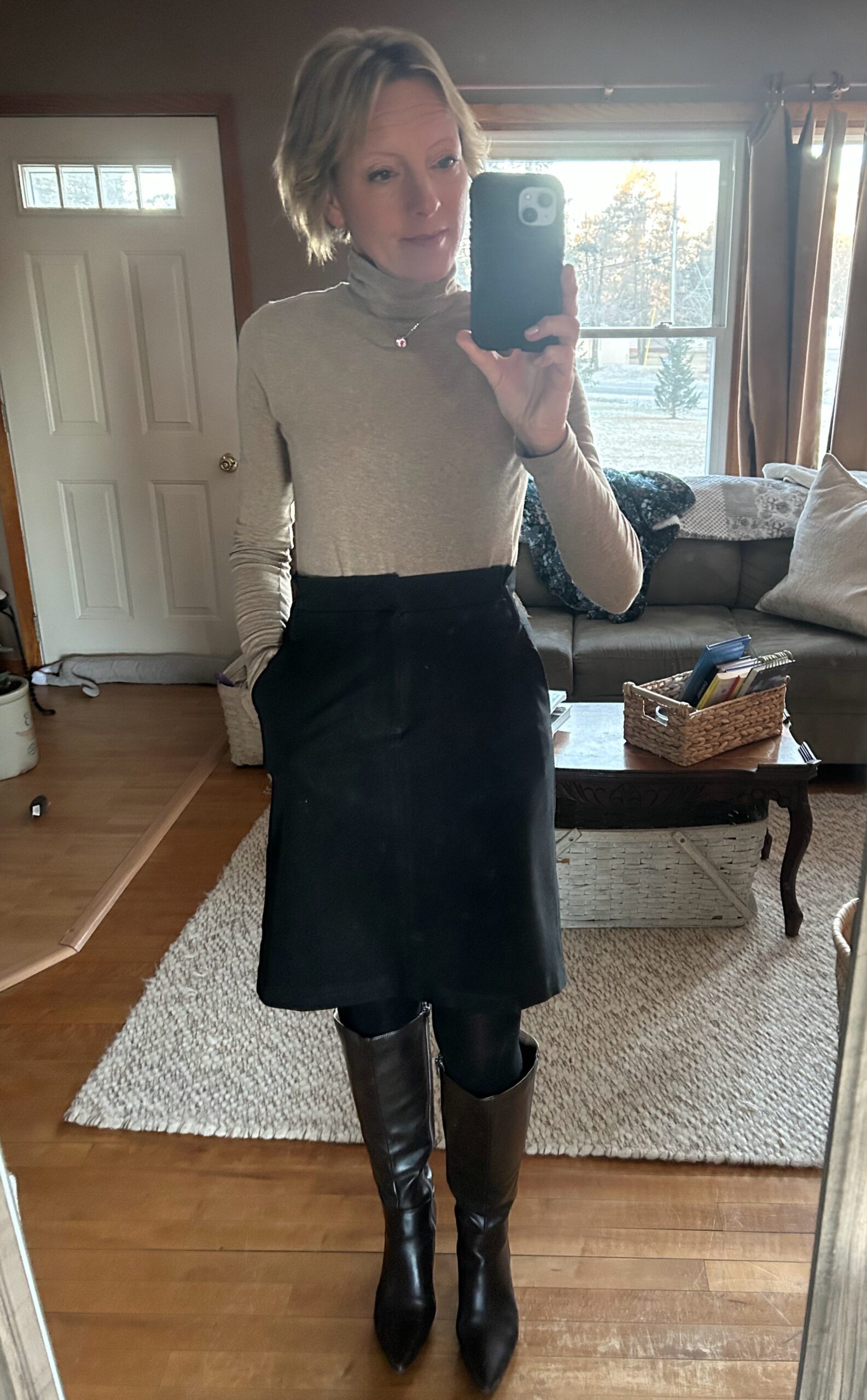 Happy New Year! I am looking forward to this year! 2024 had it’s fair share of challenges, such as my job of decades being downsized. And, to this moment, unable to find a similar position. So, here’s to 2025! I have travels to Puerto Rico and Spain to look forward to while I work on job searching! I love this Banana Republic Factory turtleneck and skirt that creates simple every day elegance. My pink Swarovski necklace gives shades of beige the perfect dose of sparkle, while this pink Poinsettia adds brightness to my surroundings.