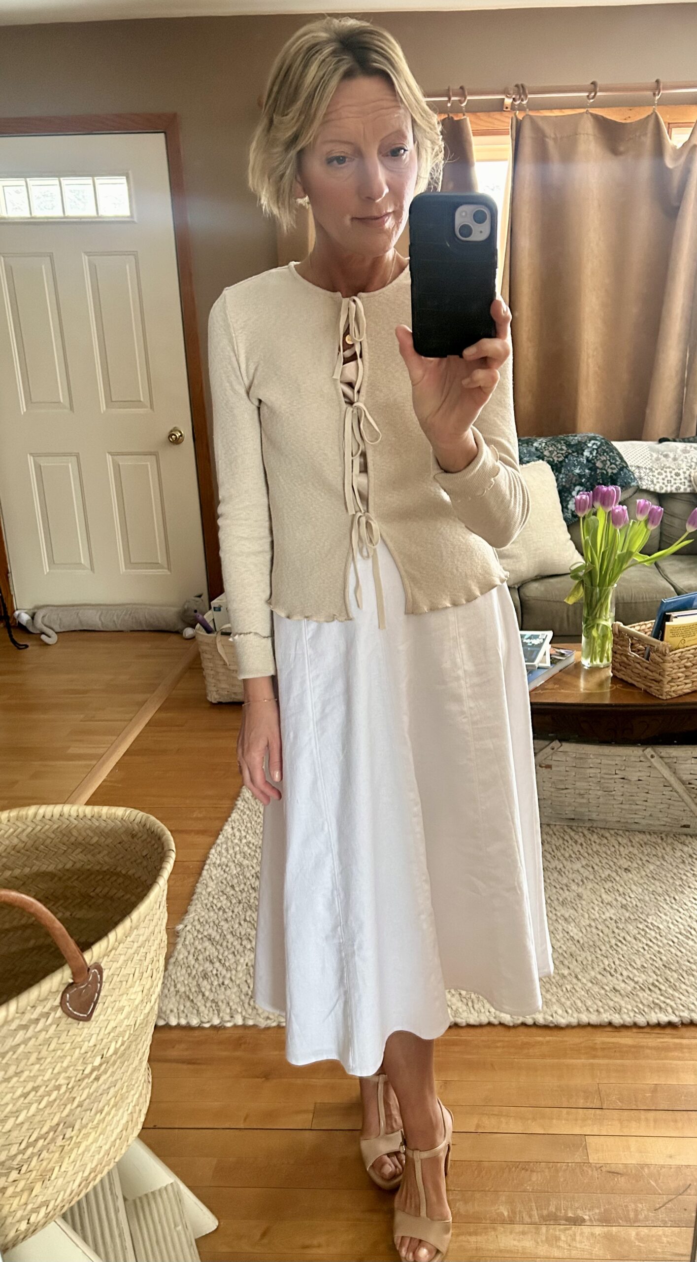 Dreaming of Spring in a White Linen Skirt: What to Wear with a White Midi Skirt